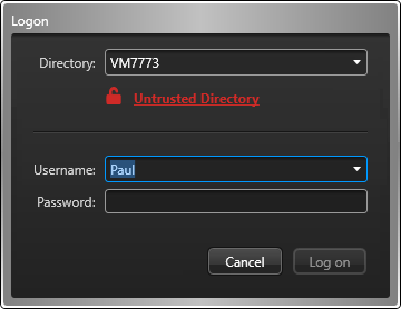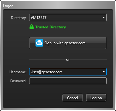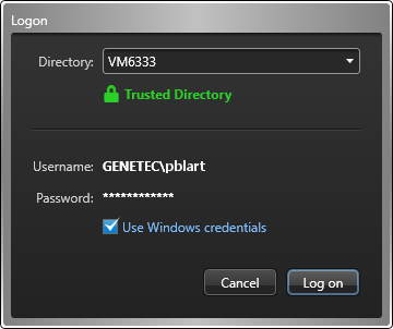Security Desk’i açın ve Logon iletişim kutusuna Dizin adını girin.
