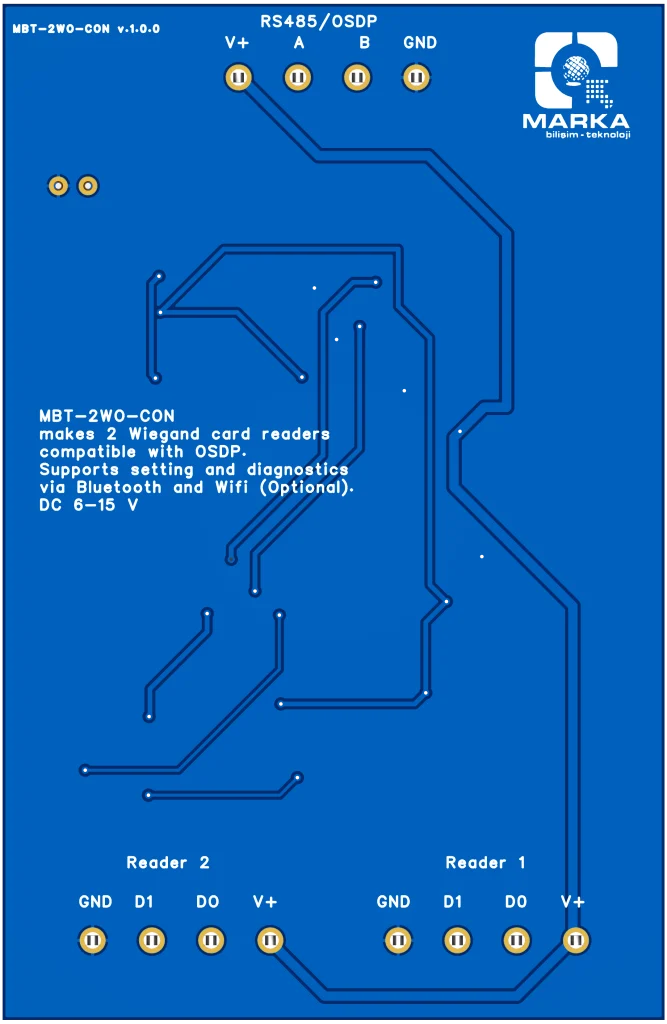 Ürün Açıklaması: Bu yenilikçi cihaz, 2 adet Wiegand girişini OSDP formatına çevirerek modern güvenlik sistemleriyle entegrasyon sağlar. BLE/WiFi desteği ile kablosuz bağlantı sunar ve 6-15V arası güç girişine uygundur.